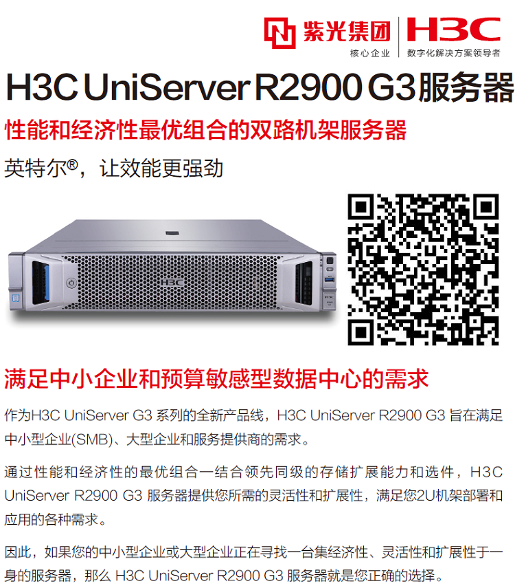 作為H3C UniServer G3 系列的全新產品線,H3C UniServer R2900 G3 旨在滿足中小型企業(SMB)、大型企業和服務提供商的需求。