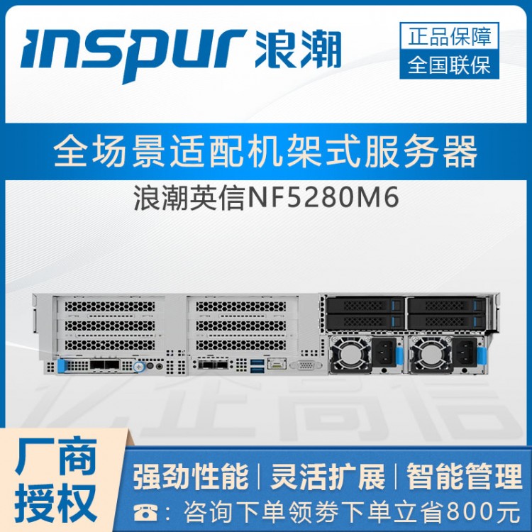 浪潮NF5280M6 2U/2*8358/8*32G/2*960GSSD+6*6T /雙端口RJ45 1Gbps/2GB/1300W 1+1/3年保硬盤免回收/導(dǎo)軌 |