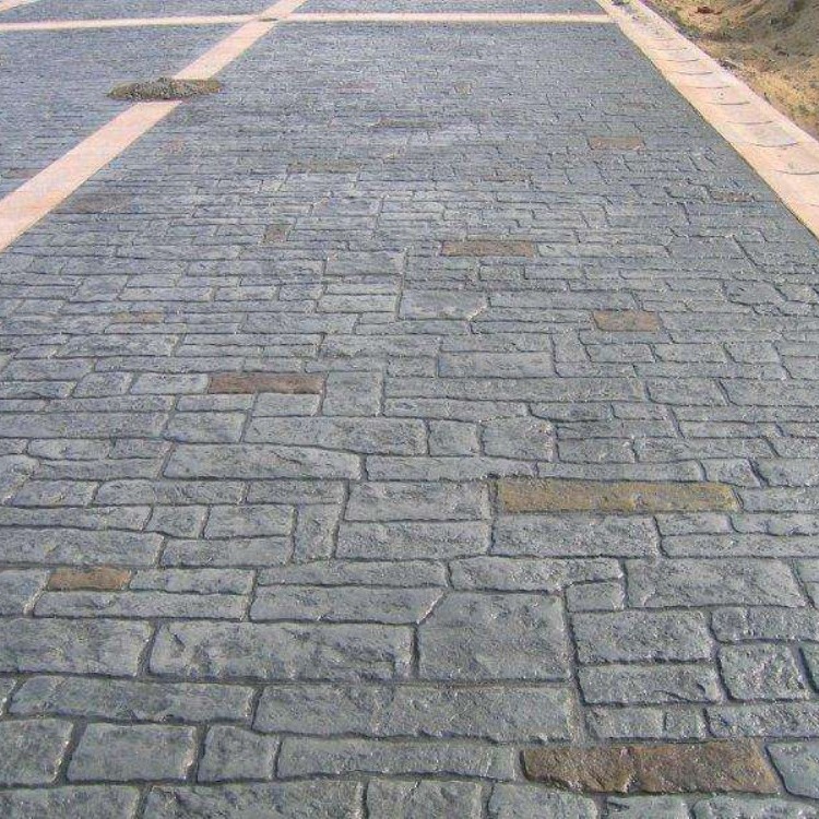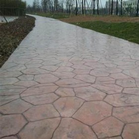5、使用藝術地坪模具對地坪面層進行紋理處理。藝術地坪模具應配套使用,首先確定好紋理的分布方向,選好一塊模具放置的位置和角度,然后其它的模具依次緊貼一塊模具放置。彩色混凝土藝術地坪壓模采用壓模,壓模應由技術較好的人員進行作業以保證壓紋深度一致和模具放置的準確性。