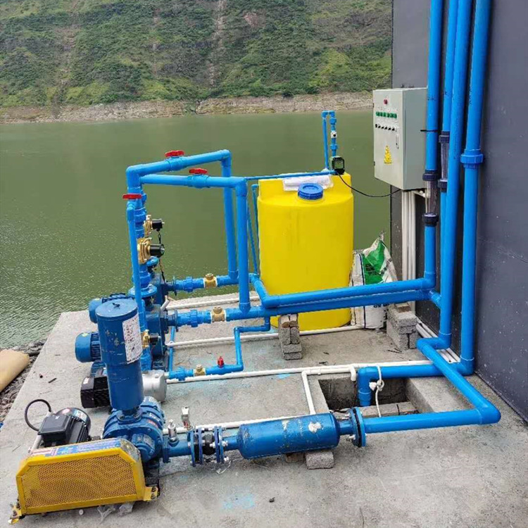 1、藥劑溶液的配置,把藥劑倒入加藥罐內,開始給水閥門注入清水,待放到一點量時,即關閉水閥門,控制藥劑濃度一般藥劑濃度在10%-20%之間。